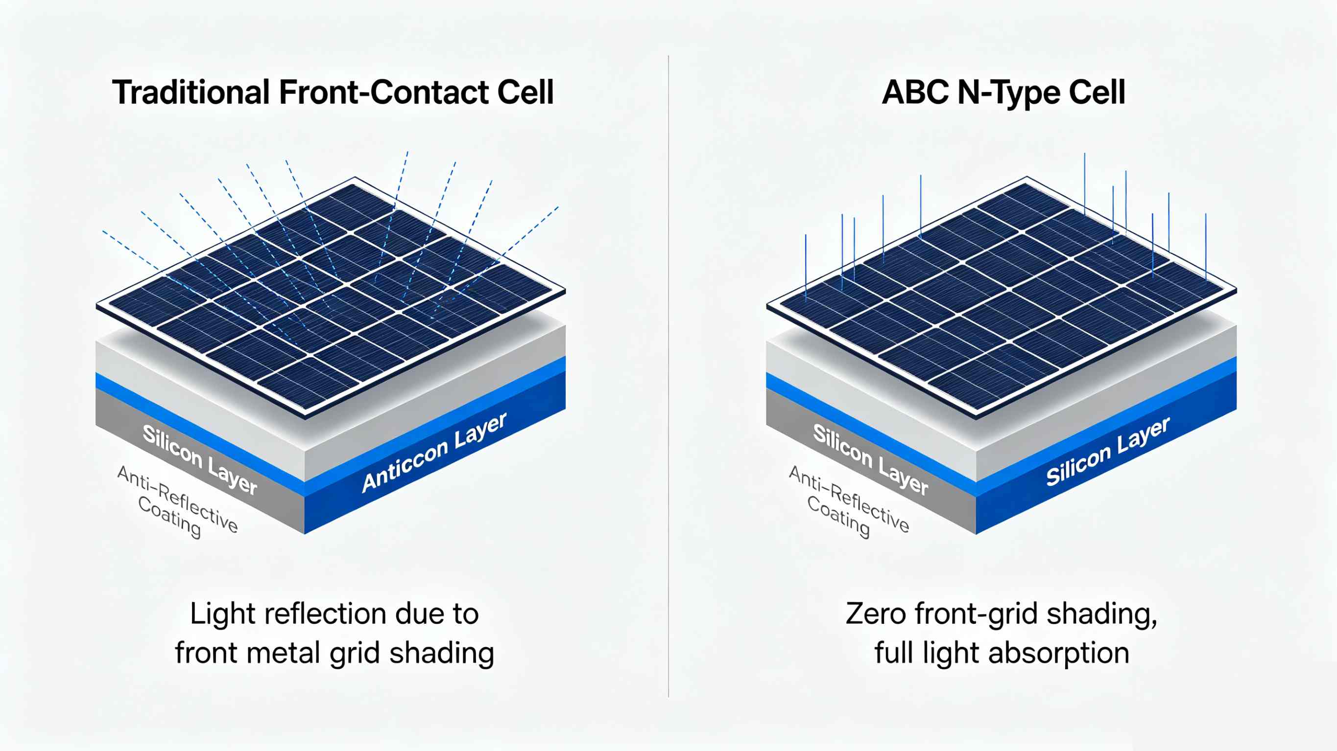Better Low-Light & Temperature Coefficients: In 2026, with hotter summers becoming the norm, ABC modules maintain higher performance during peak heat hours compared to standard cells, which suffer from thermal throttling.